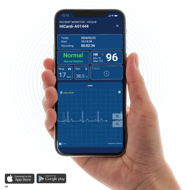 Το HiCardi® Wearable ECG & Arrhythmia Diagnosis and Monitor προορίζεται να χρησιμοποιηθεί για την παρακολούθηση και καταγραφή ηλεκτροκαρδιογραφήματος (ΗΚΓ). Αναγνωρίζει 17 διαφορετικές αρρυθμίες, αναπνοή, θερμοκρασία δέρματος, δραστηριότητα , στάση σώματος και είναι κατάλληλο για χρήση ενηλίκων, παίδων, βρεφών και νεογνών σε νοσοκομειακό , οικιακό αλλά και επαγγελματικό περιβάλλον.